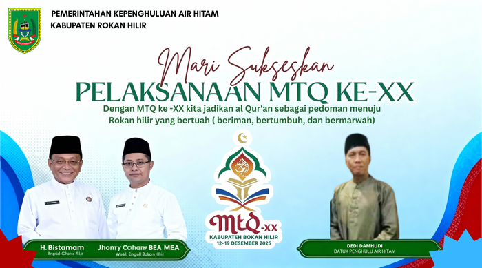 Penghulu Dedi Damhudi dari Kabupaten Rokan Hilir, khususnya Kepenghuluan Air Hitam, secara resmi menyampaikan apresiasi dan dukungan penuh atas inisiatif pelaksanaan Musabaqah Tilawatil Qur’an (MTQ) ke-XX tingkat Kabupaten Rokan Hilir. Ajang bergengsi ini dijadwalkan berlangsung dari tanggal 12 hingga 19 Desember.