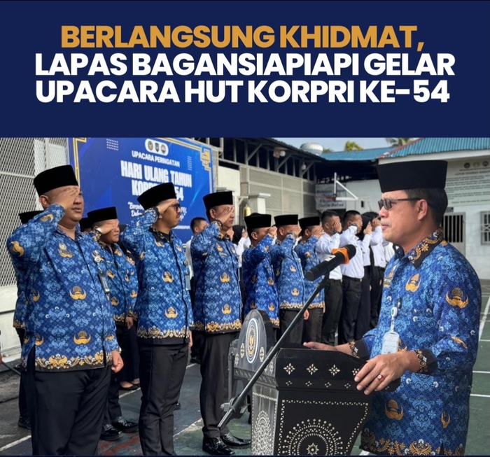 Sementara itu, Plt Kepala Lapas Bagansiapiapi, Nimrot Sihotang, turut mengikuti upacara HUT KORPRI ke-54 bersama jajaran Kantor Wilayah Direktorat Jenderal Pemasyarakatan Riau di lokasi berbeda. Di samping itu, dengan semangat yang sama, Kalapas Bagansiapiapi mengajak seluruh ASN, terutama Lapas Bagansiapiapi, untuk meneruskan pengabdian sebagaimana tertuang dalam Panca Prasetya KORPRI dan Sambutan Ketua Korpri, “Bersatu Berdaulat Bersama KORPRI dalam mewujudkan Indonesia Maju.”